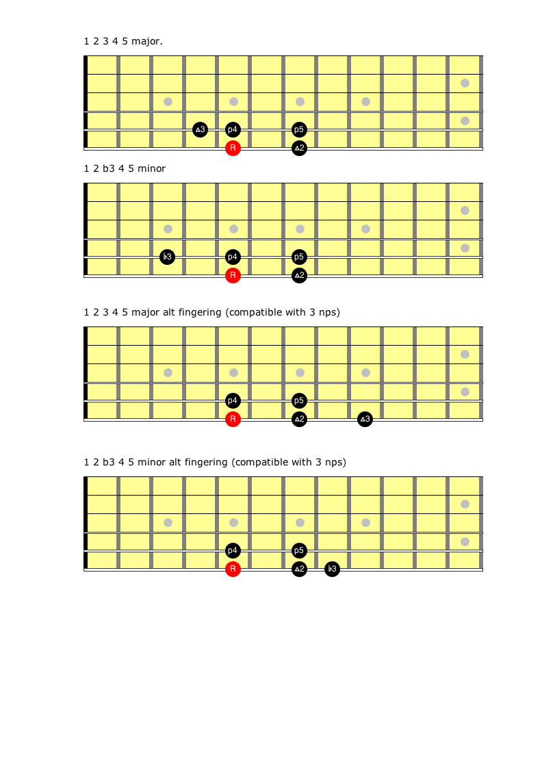 Your mission is firstly to learn the shapes so that you can play 1 2 3 4 5 major or 1 2 b3 4 5 minor. If you get this far, this is plenty. Play with alternate picking. If you are already into playing full scales, see if you can devise a sequence.