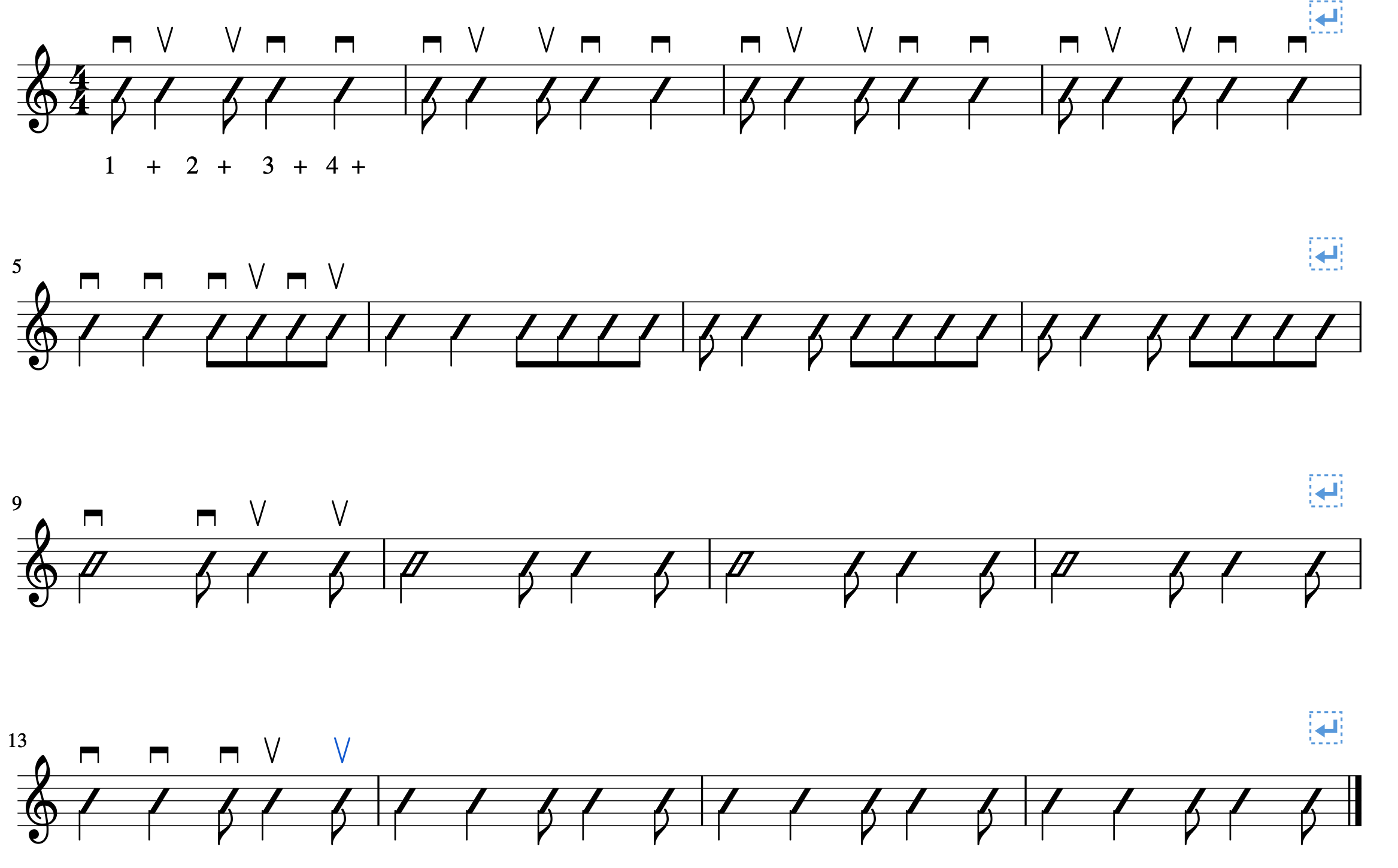 -If you want to hear a strumming pattern in a song and be able to play it, it’s essential to become comfortable with this figure as it’s all over the place.